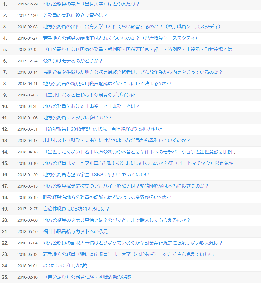 人気記事は、相変わらず学歴ネタ。カテゴリでいうと「公務員になるまで」です。