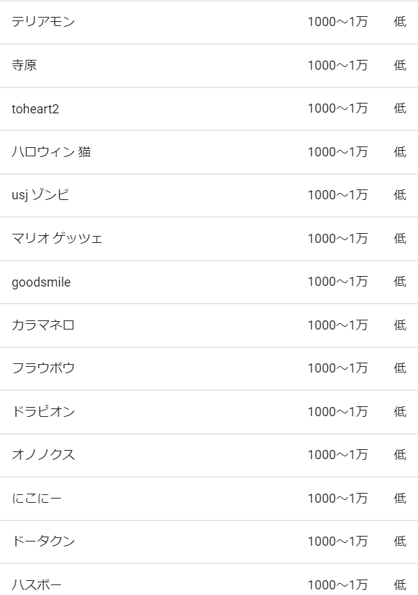 上記キーワードのほとんどが、年間検索数1,000~10,000回にあたります。