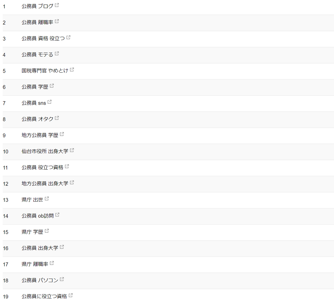 結果、公務員関係でも、以下のようなキーワードがよく検索されているとのこと。